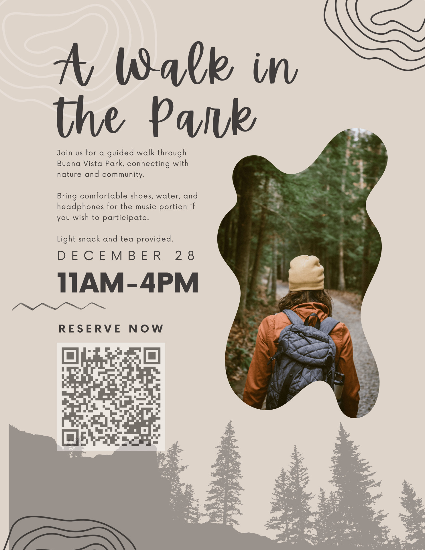 Join us for a leisurely walk through Buena Vista Park, reflecting and connecting with nature.